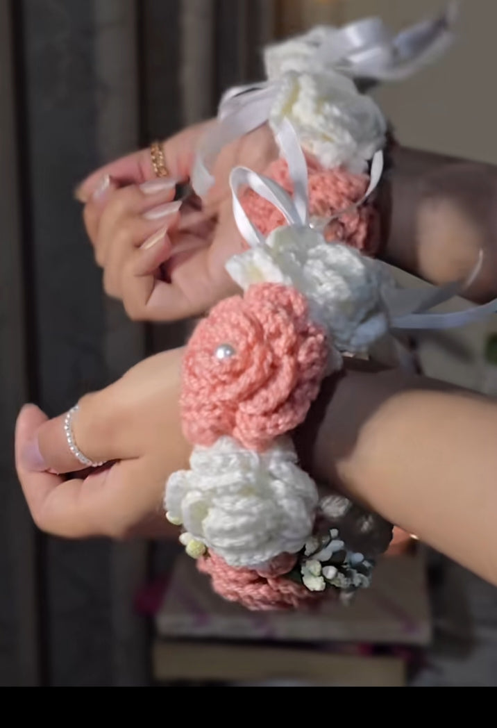 Handmade Crochet Rose Wrist Gajra for Women Pearls
