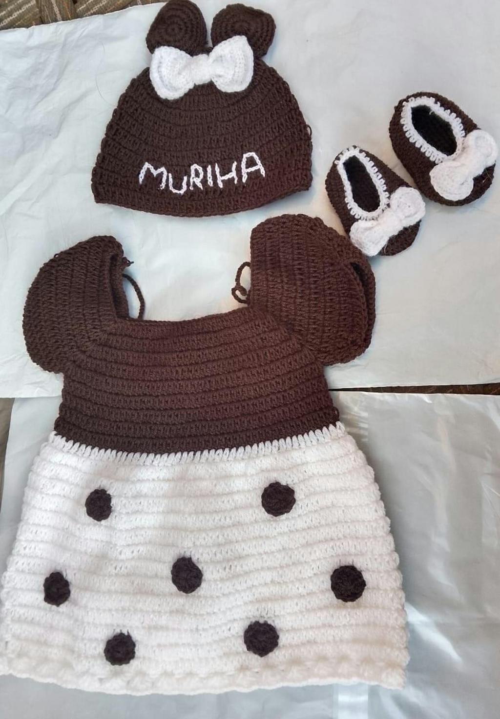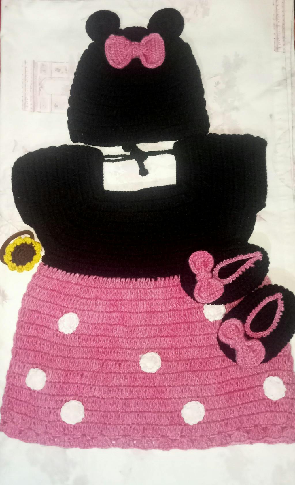Handmade Minnie Style Crochet Dress and Shoes
